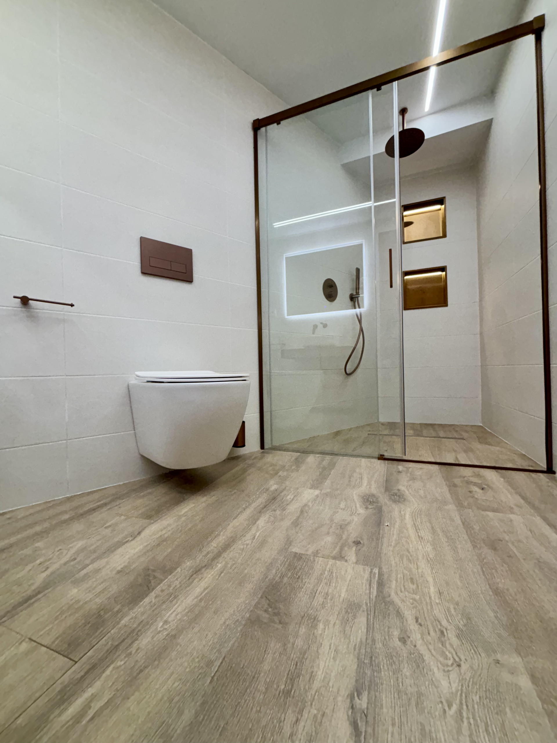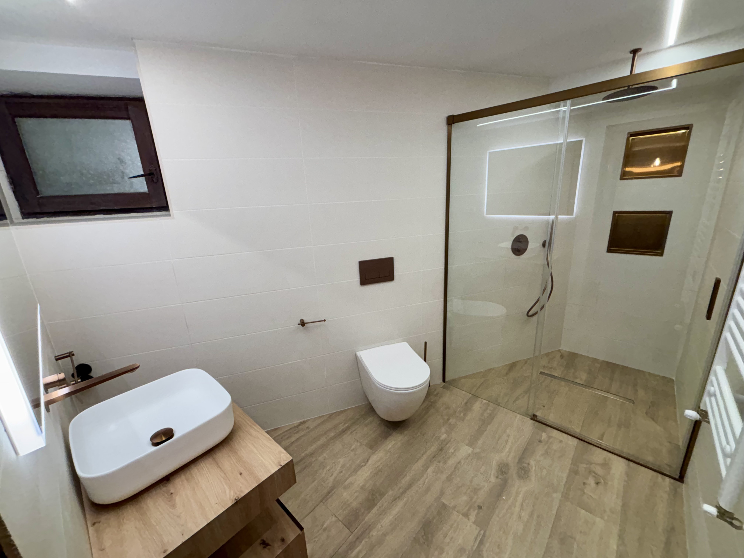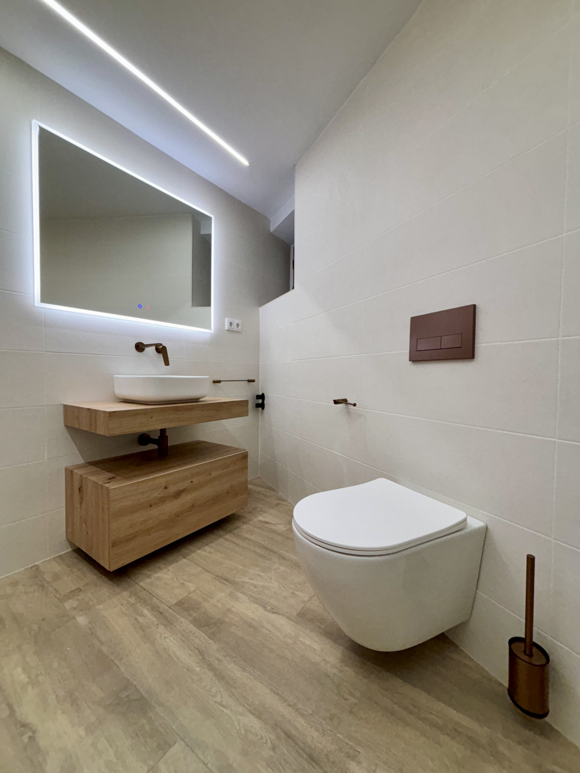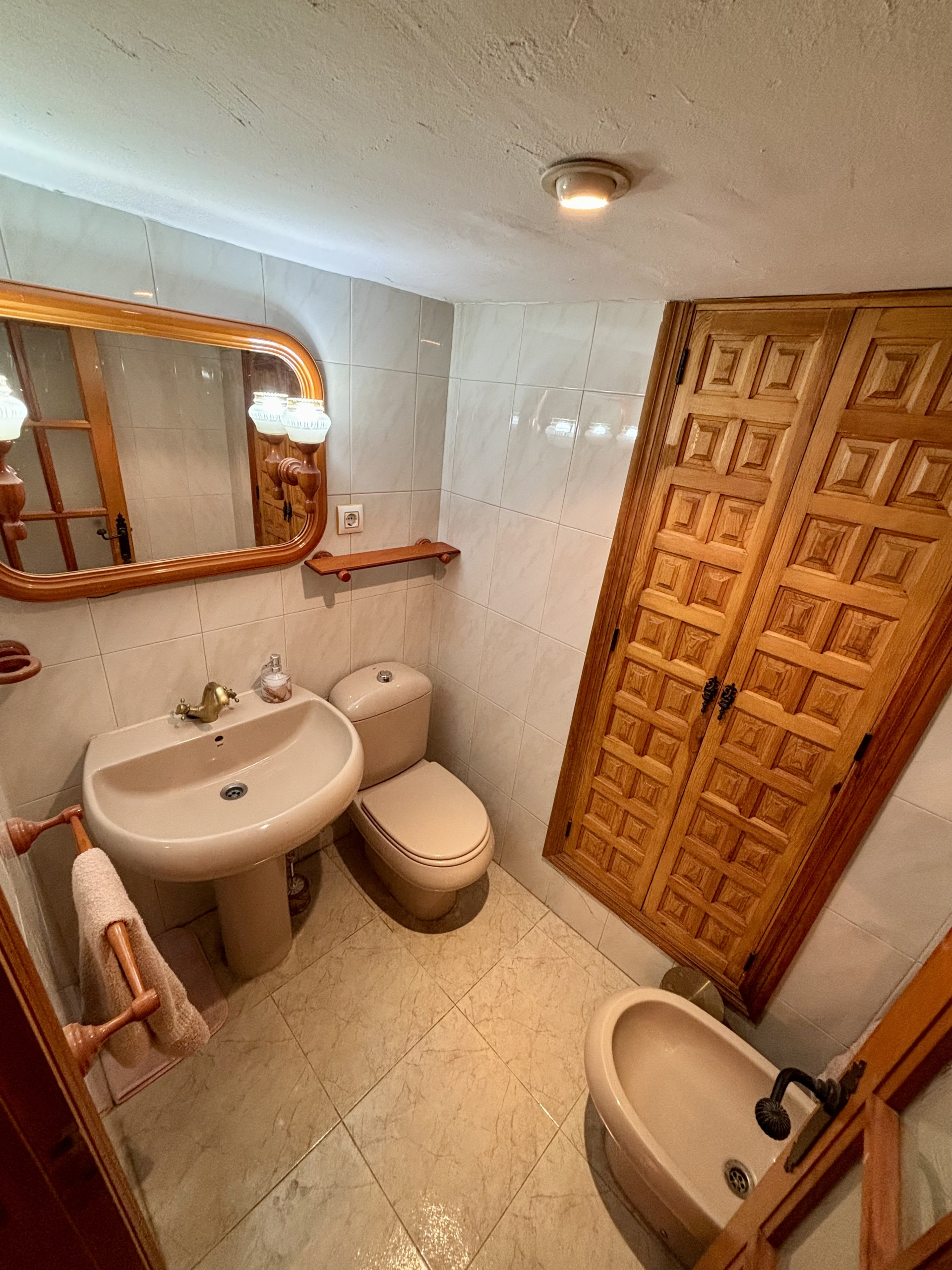 El apartamento, con una superficie de 80 m², se distribuye de manera funcional en dos plantas para ofrecer la máxima comodidad a sus cuatro huéspedes. En la planta baja se encuentra un acogedor hall de entrada que da paso a un dormitorio con cama de matrimonio, un aseo equipado con bidet y una zona independiente de lavandería con lavadora y plancha.