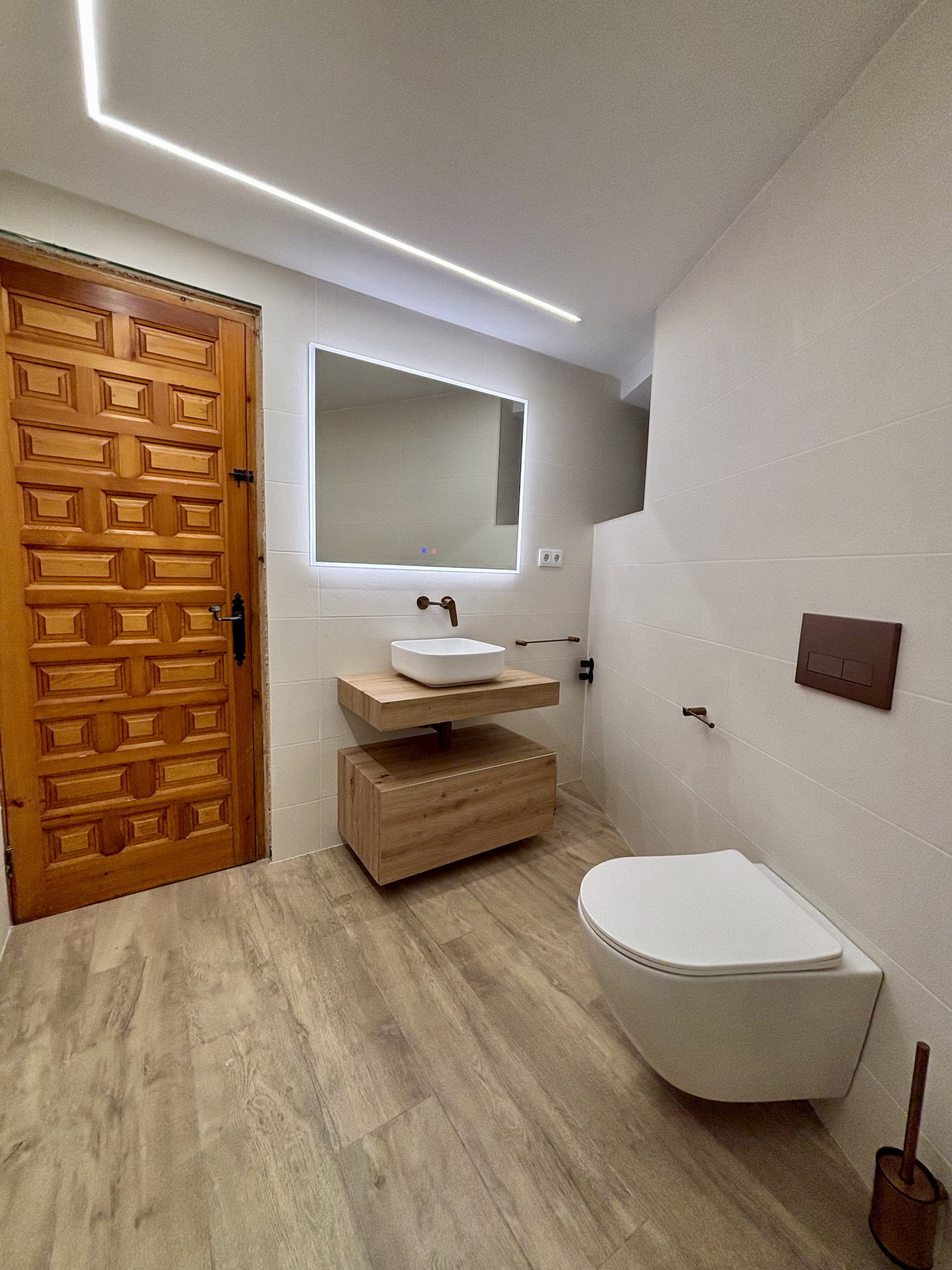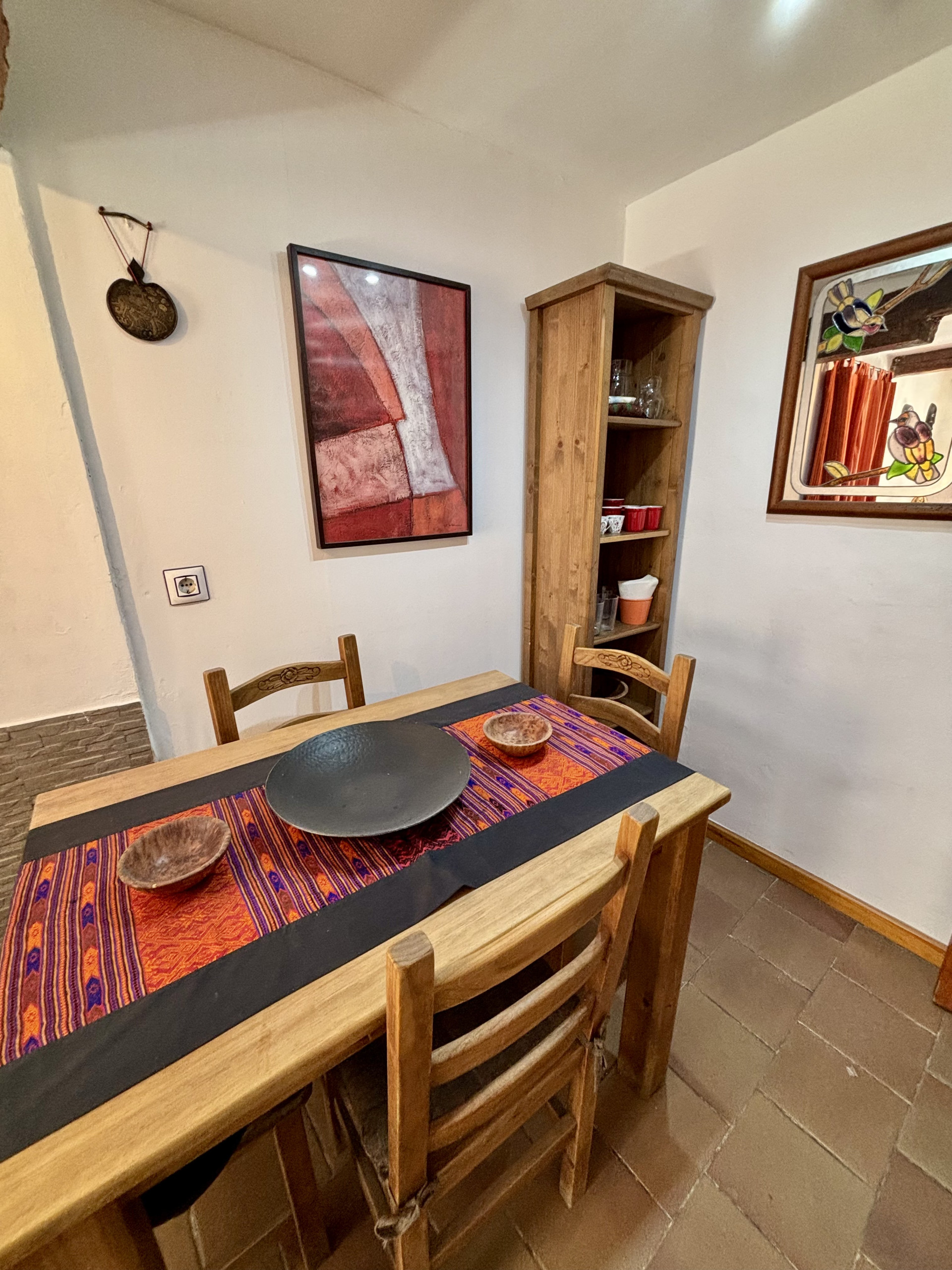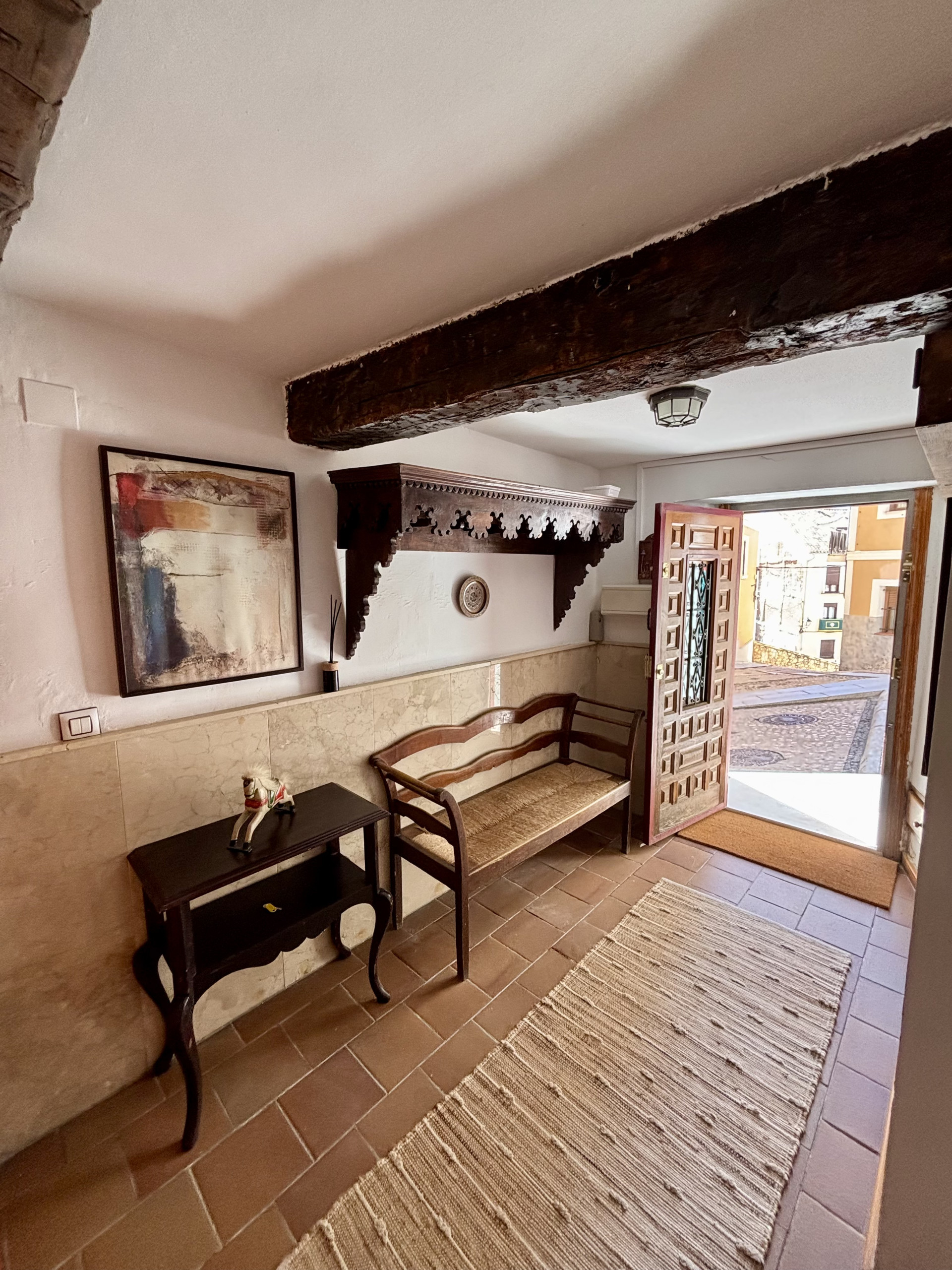 La planta superior está diseñada para el disfrute y la convivencia, destacando un salón comedor luminoso equipado con televisión y acceso a internet wifi. En este mismo nivel se ubica el segundo dormitorio con cama de matrimonio y un baño principal con ducha. La cocina americana de inducción se integra perfectamente en el espacio y cuenta con todo lo necesario para sentirse como en casa, incluyendo lavavajillas, microondas, cafetera, tostadora, hervidor de agua y exprimidor, garantizando una estancia perfecta en el corazón de Cuenca.