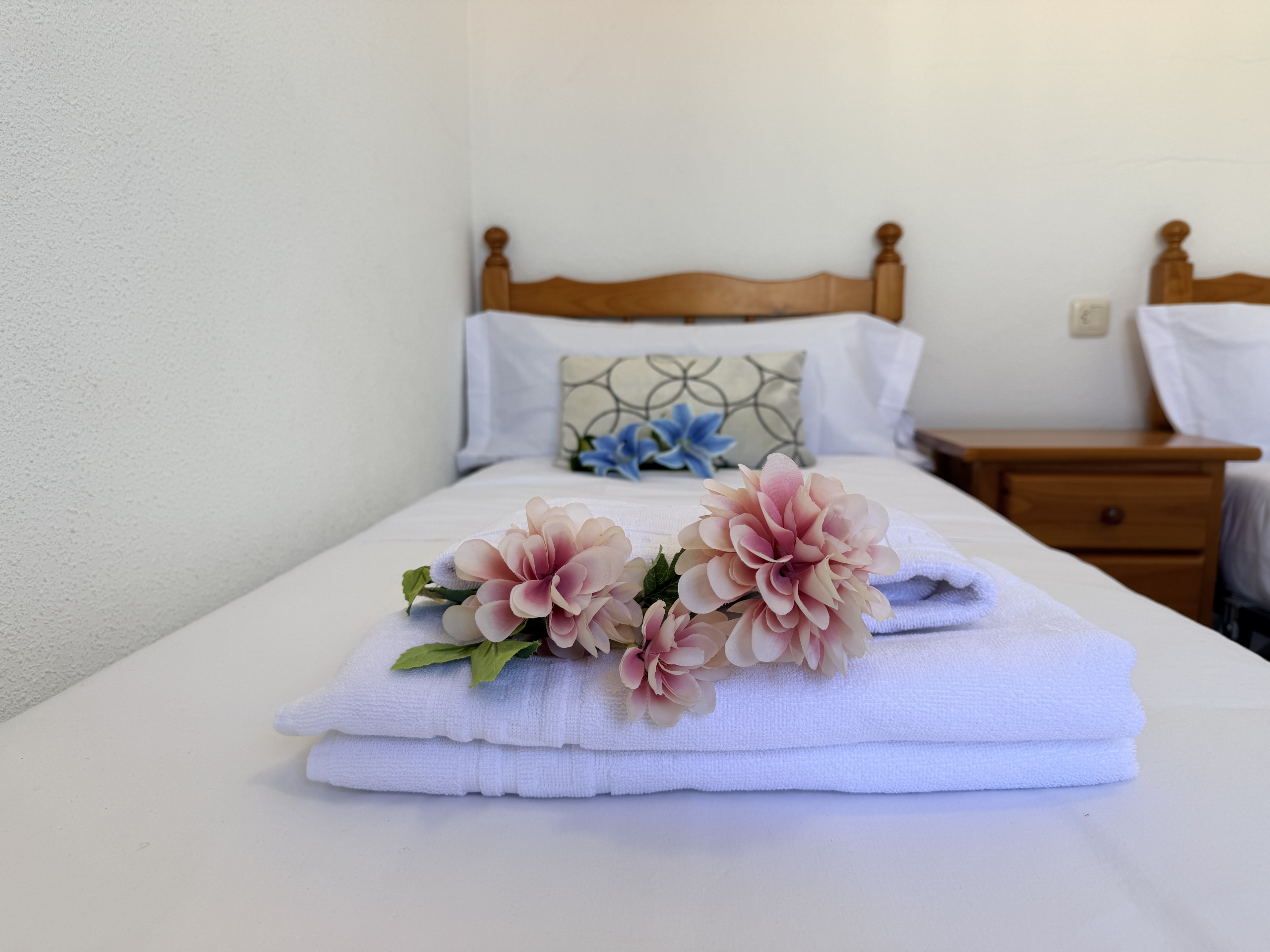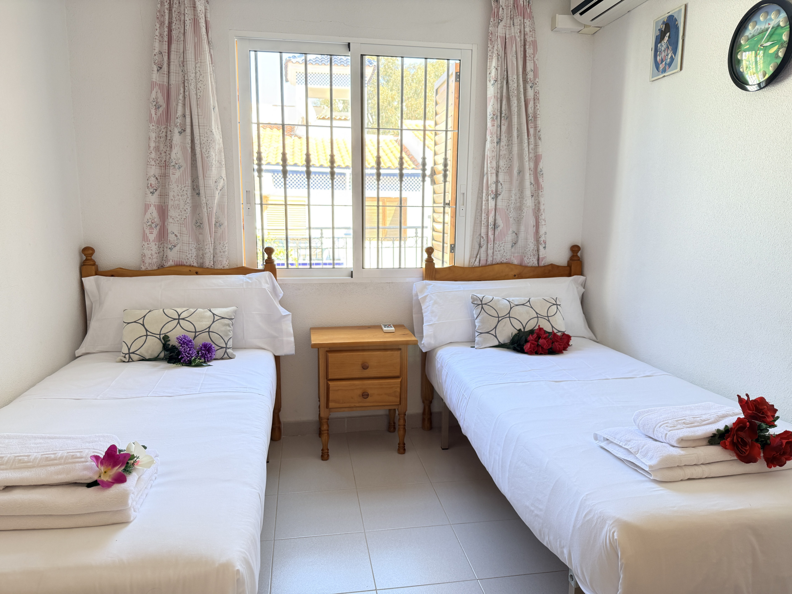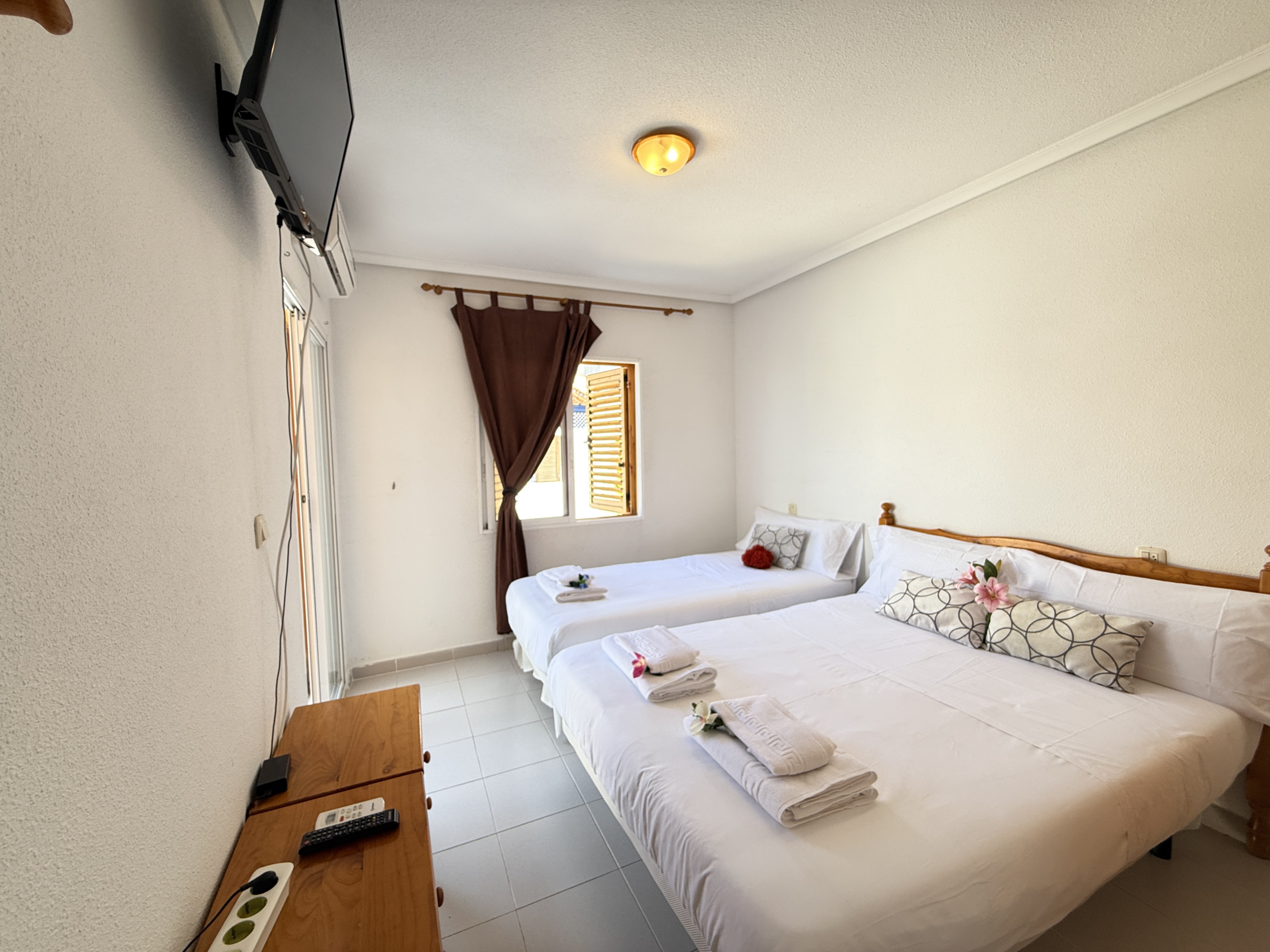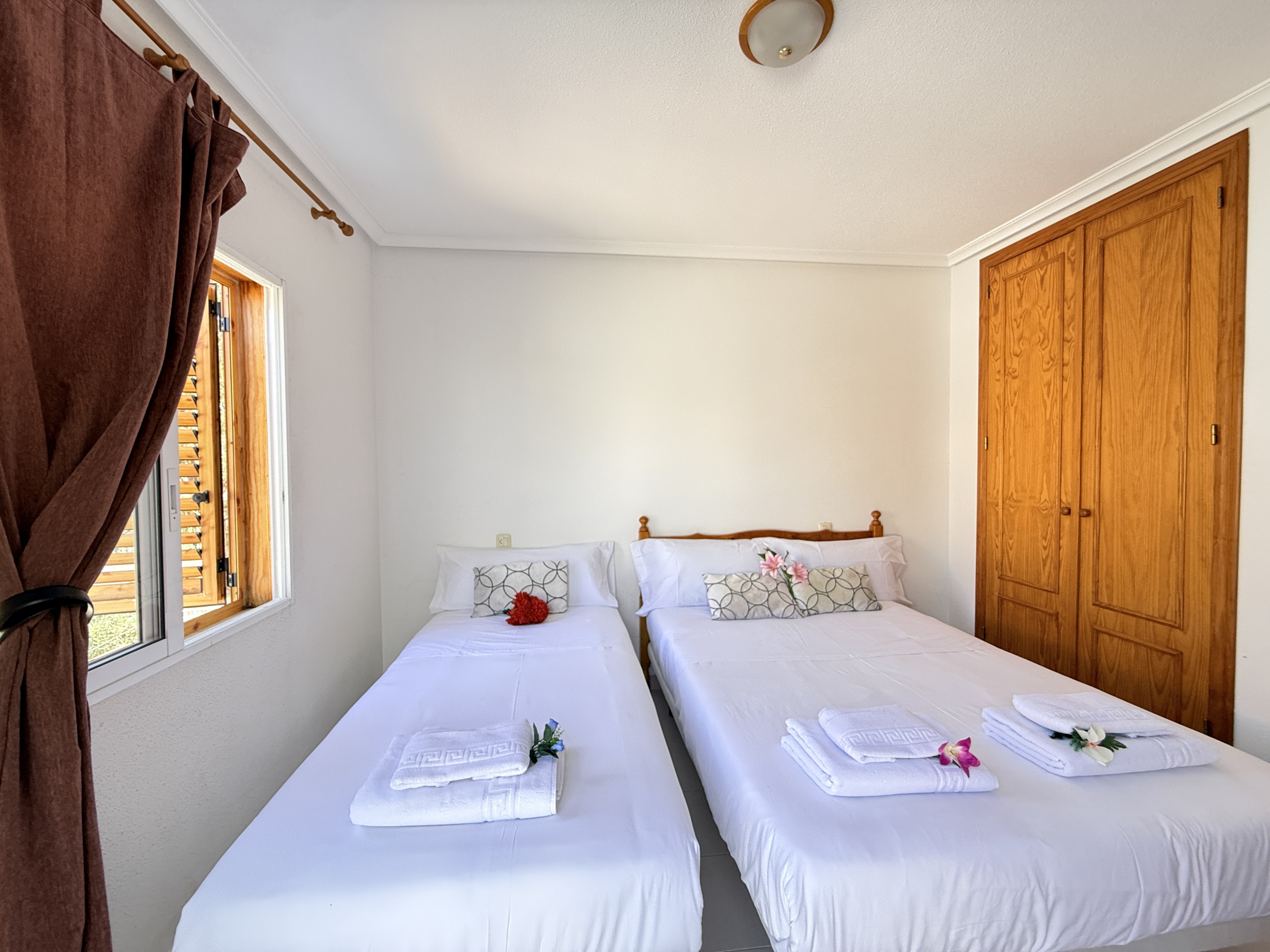 Primera Planta : Aquí se encuentran dos dormitorios acogedores. El primero cuenta con una cama doble y una cama individual, ideal para familias con niños pequeños. El segundo dormitorio dispone de dos camas individuales, ofreciendo un ambiente tranquilo y reparador.