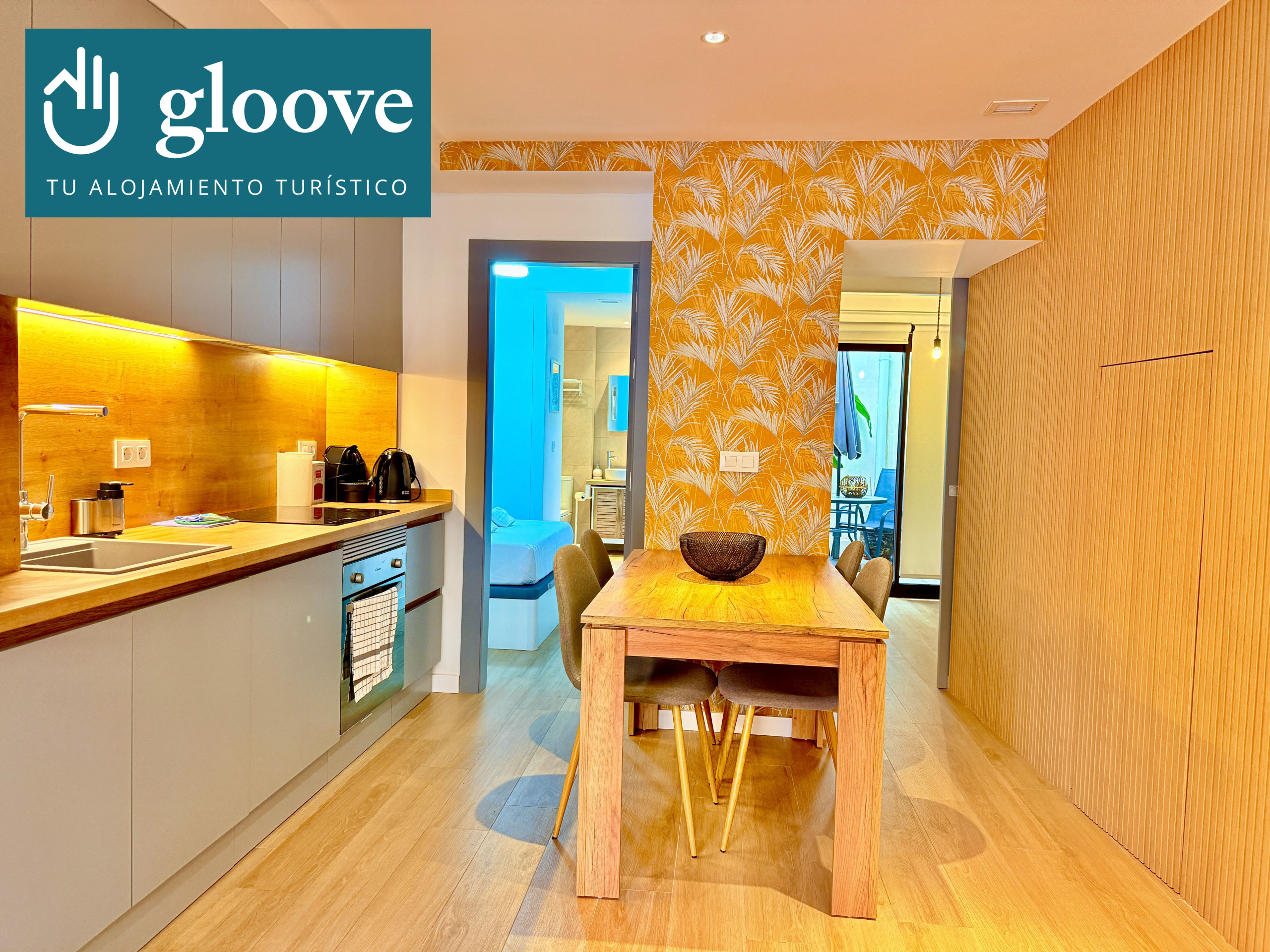 La cocina americana está completamente equipada con nevera, lavadora, lavavajillas, horno, máquina de café, tostadora, hervidor y exprimidor. Además, cuenta con todos los utensilios de cocina necesarios para preparar comidas deliciosas durante su estancia.