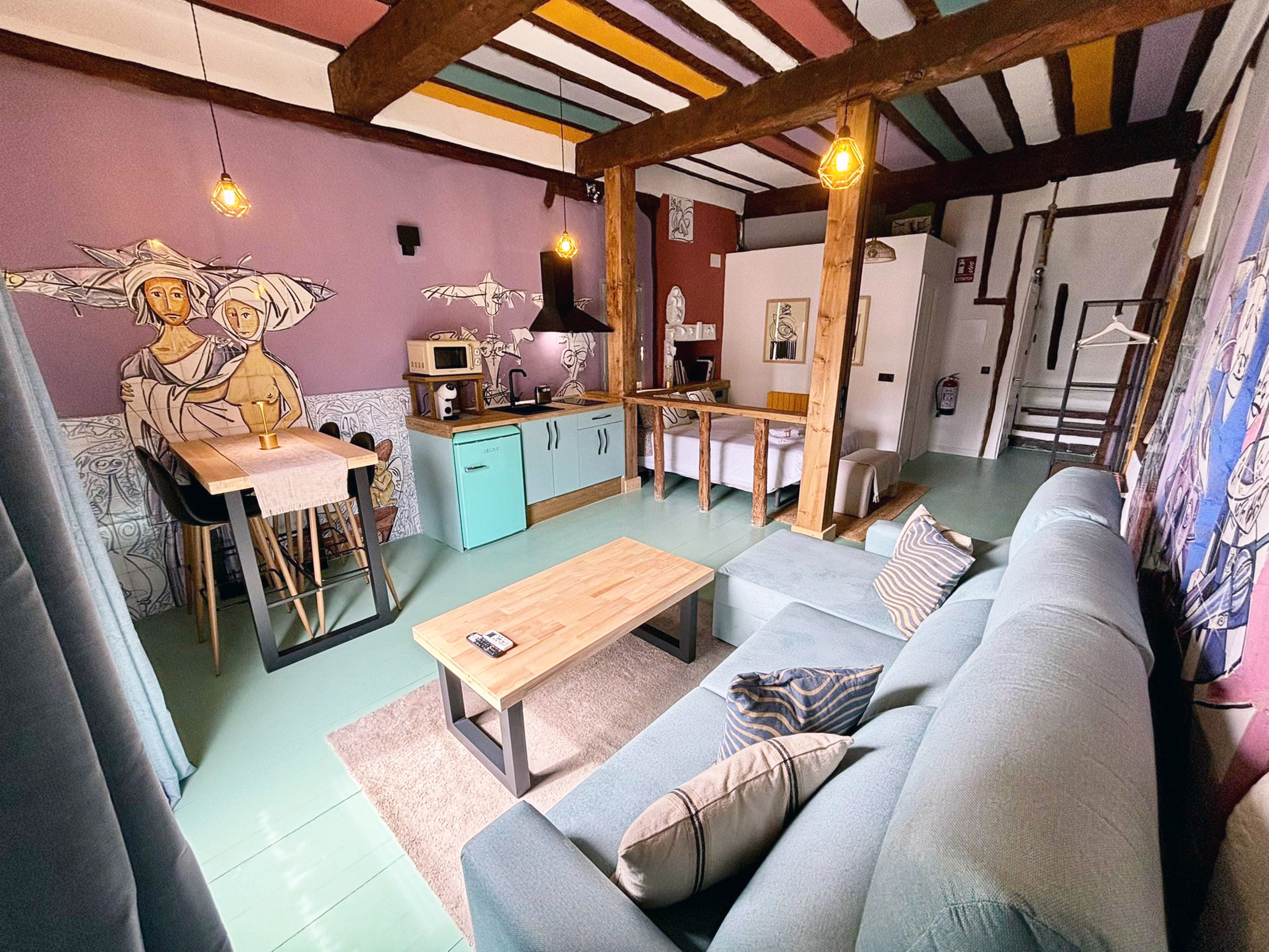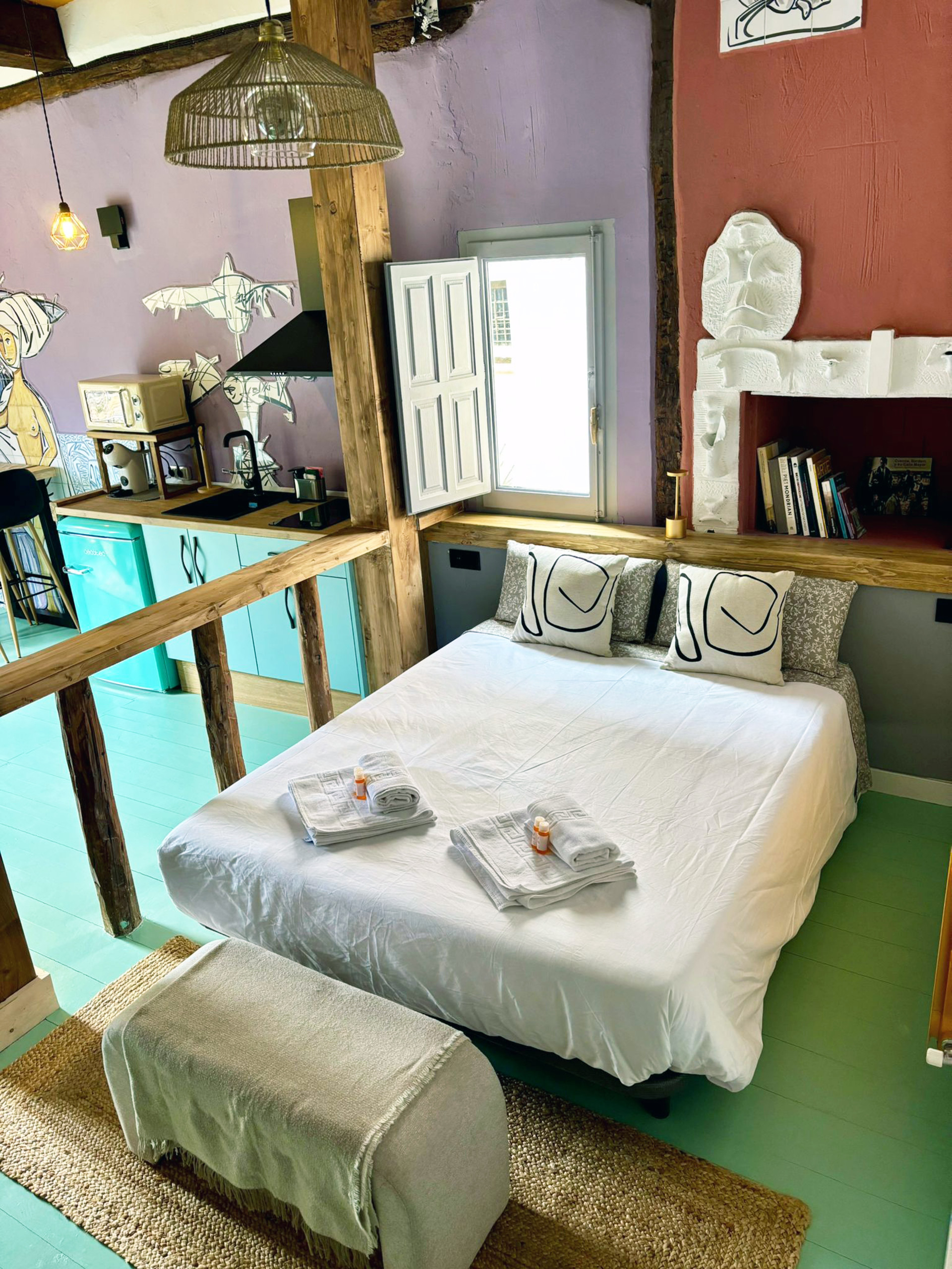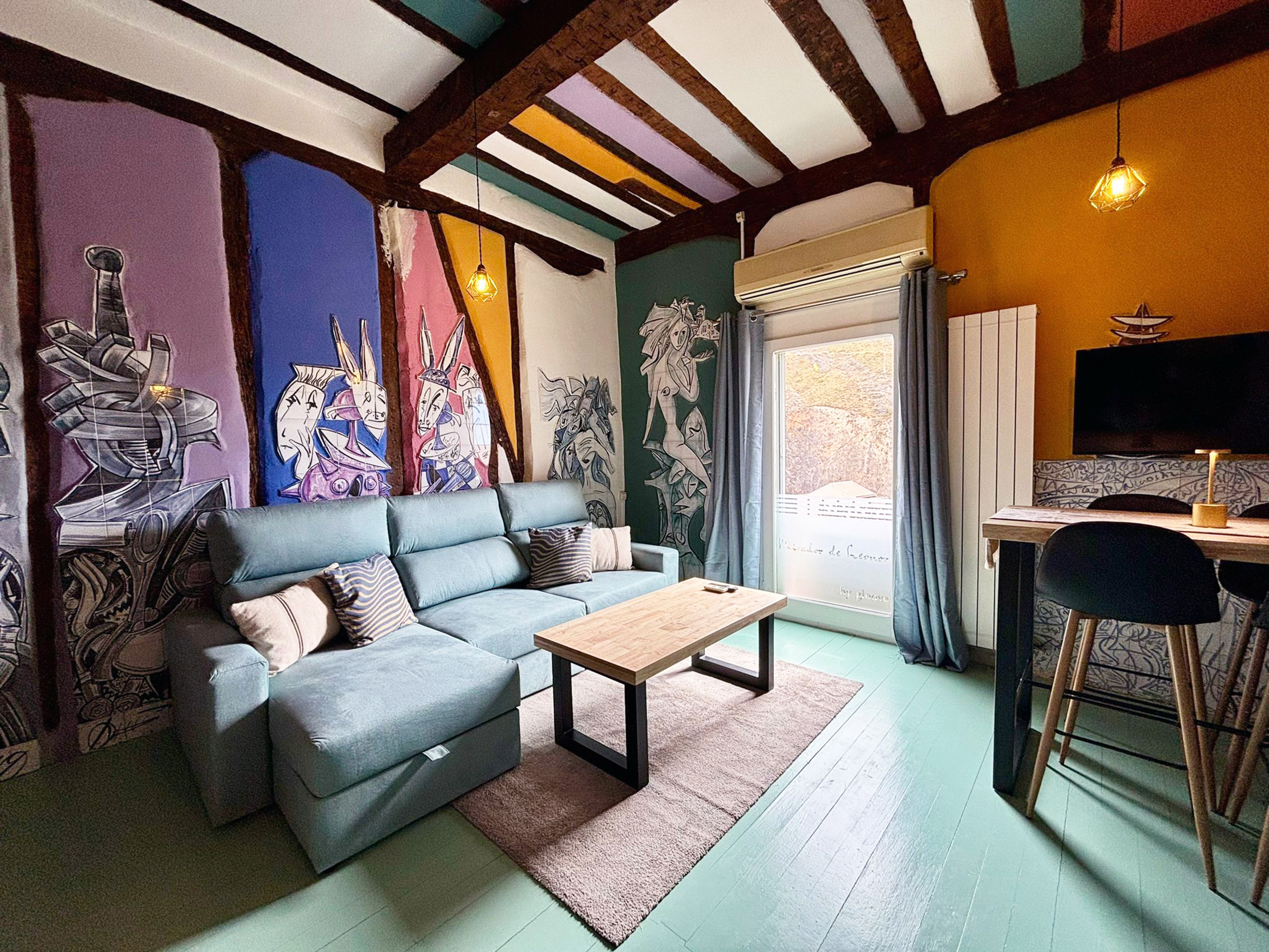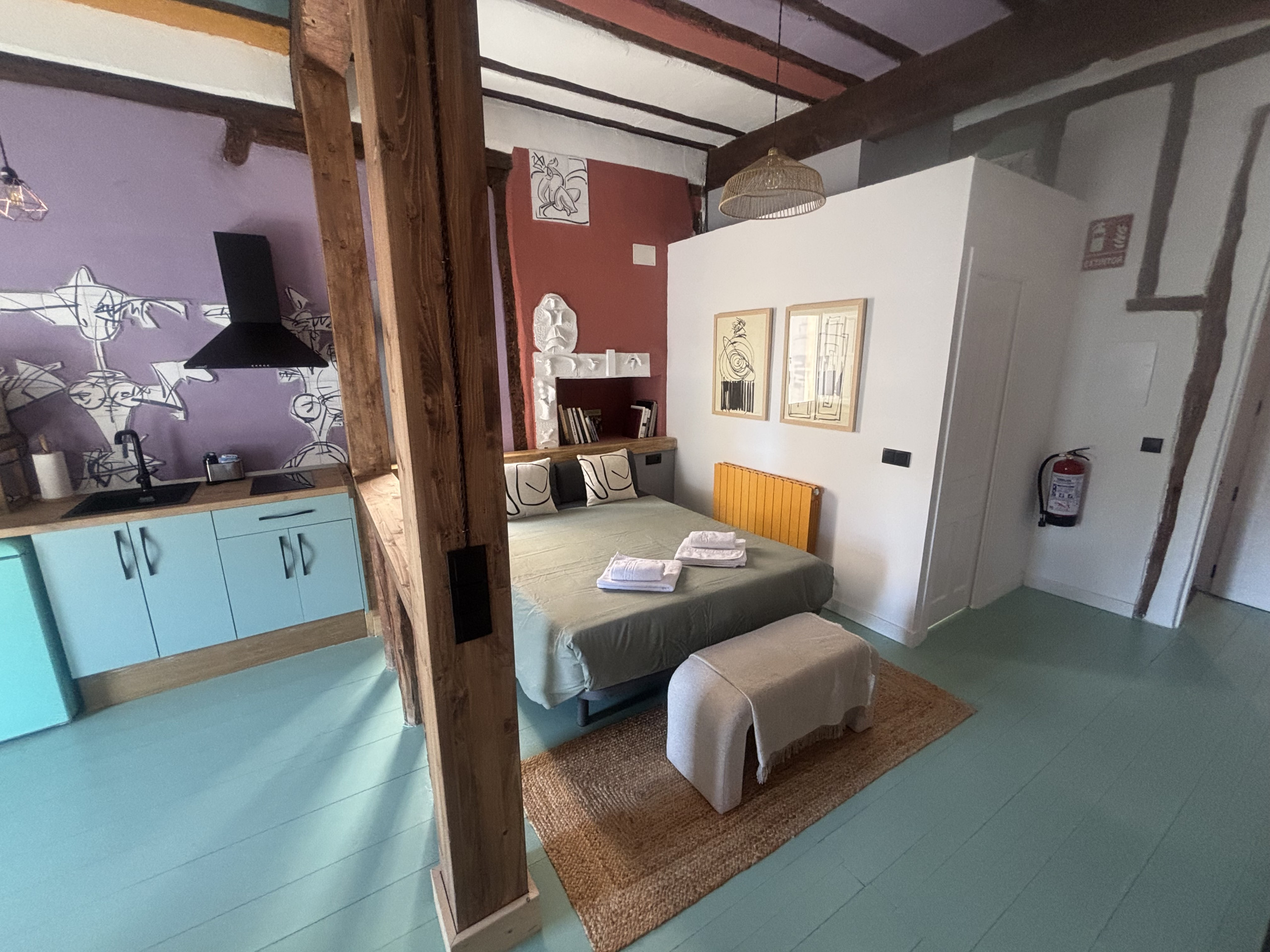 Totalmente reformado recientemente, este encantador alojamiento combina el carácter histórico del edificio con todas las comodidades actuales. Tiene capacidad para 4 personas, con un dormitorio con cama de matrimonio y un cómodo sofá cama en el salón. Dispone de cocina equipada con placa eléctrica, nevera y menaje, baño con plato de ducha, aire acondicionado, calefacción, televisión y Wi-Fi gratuito.