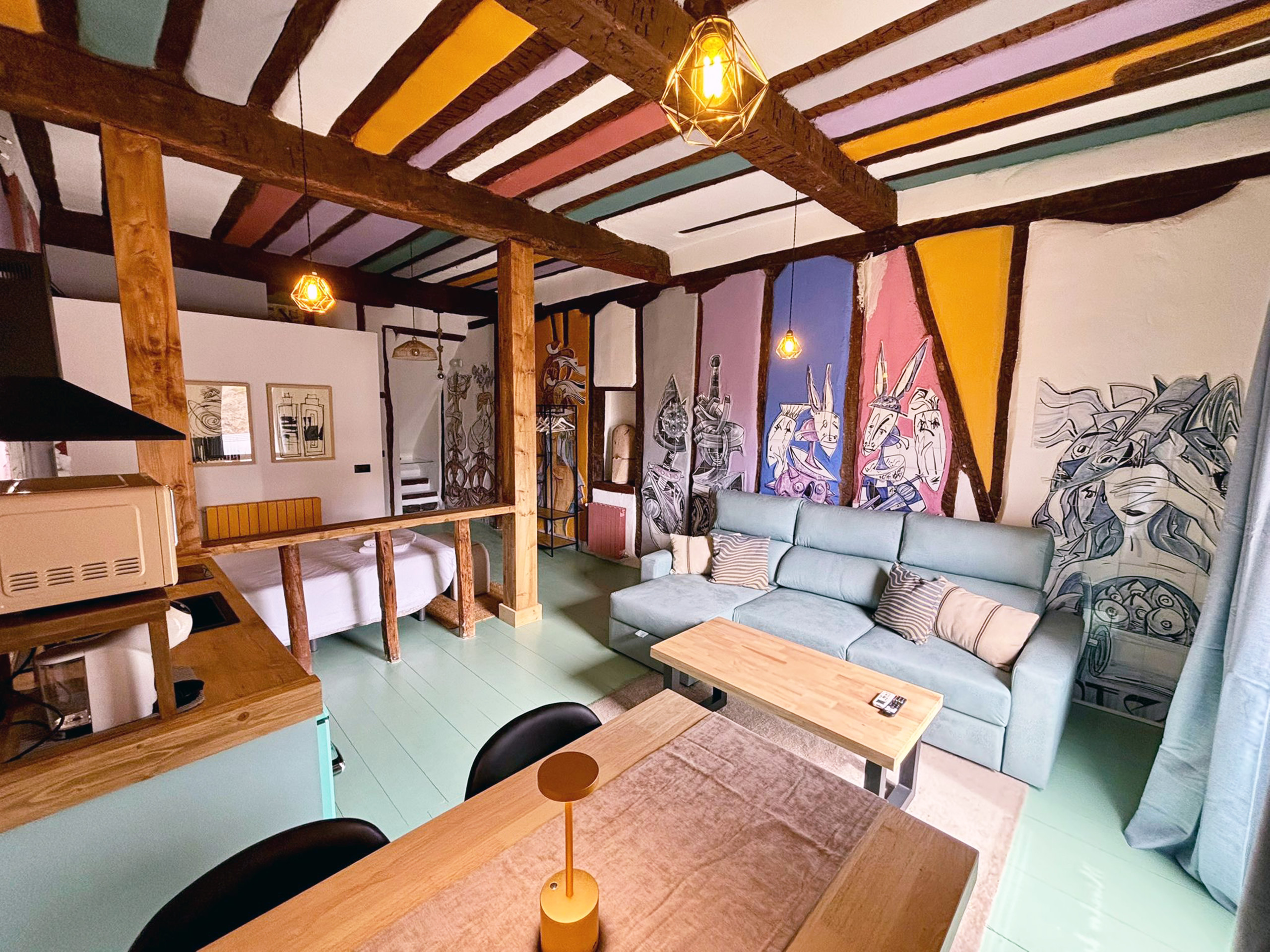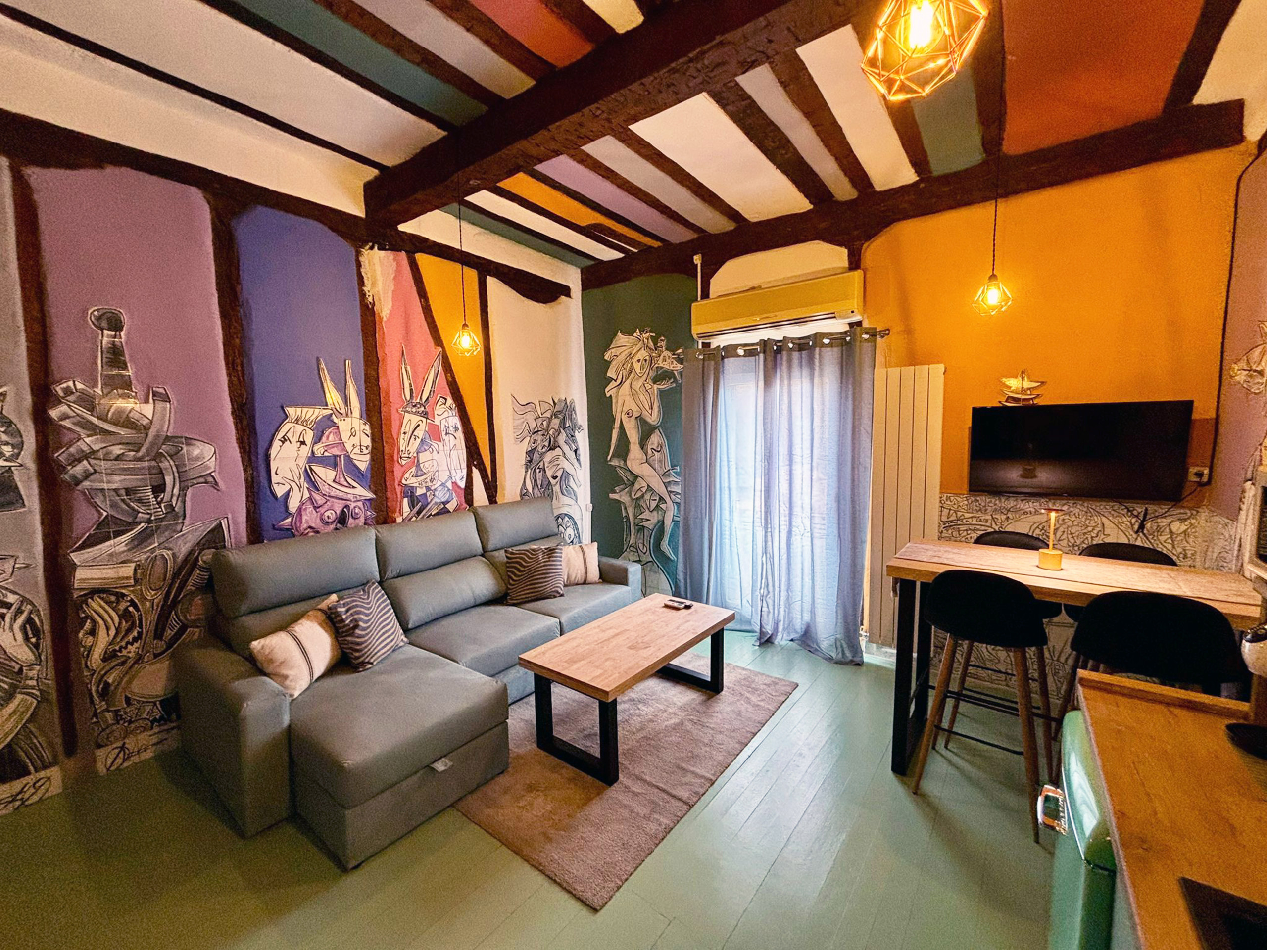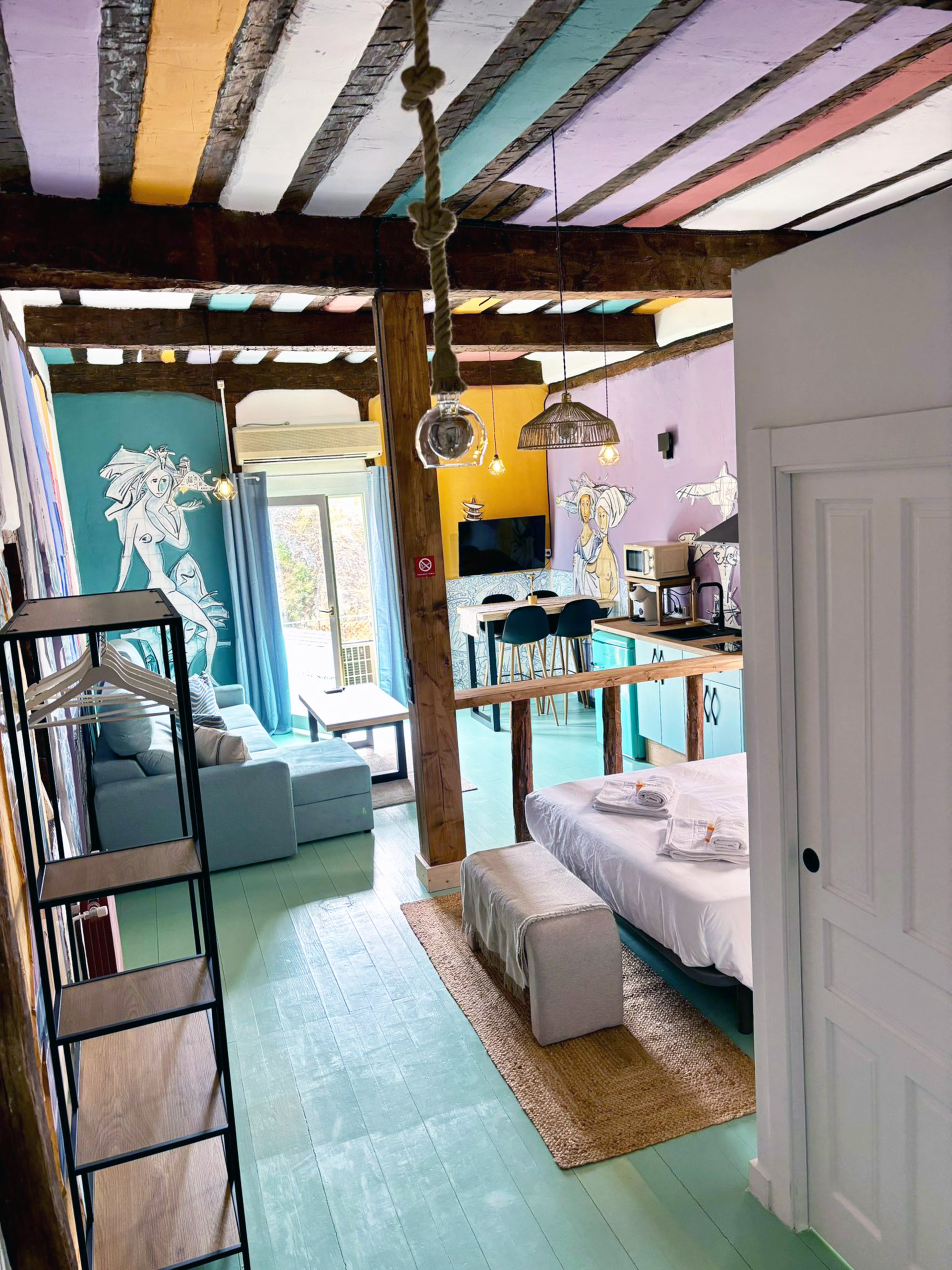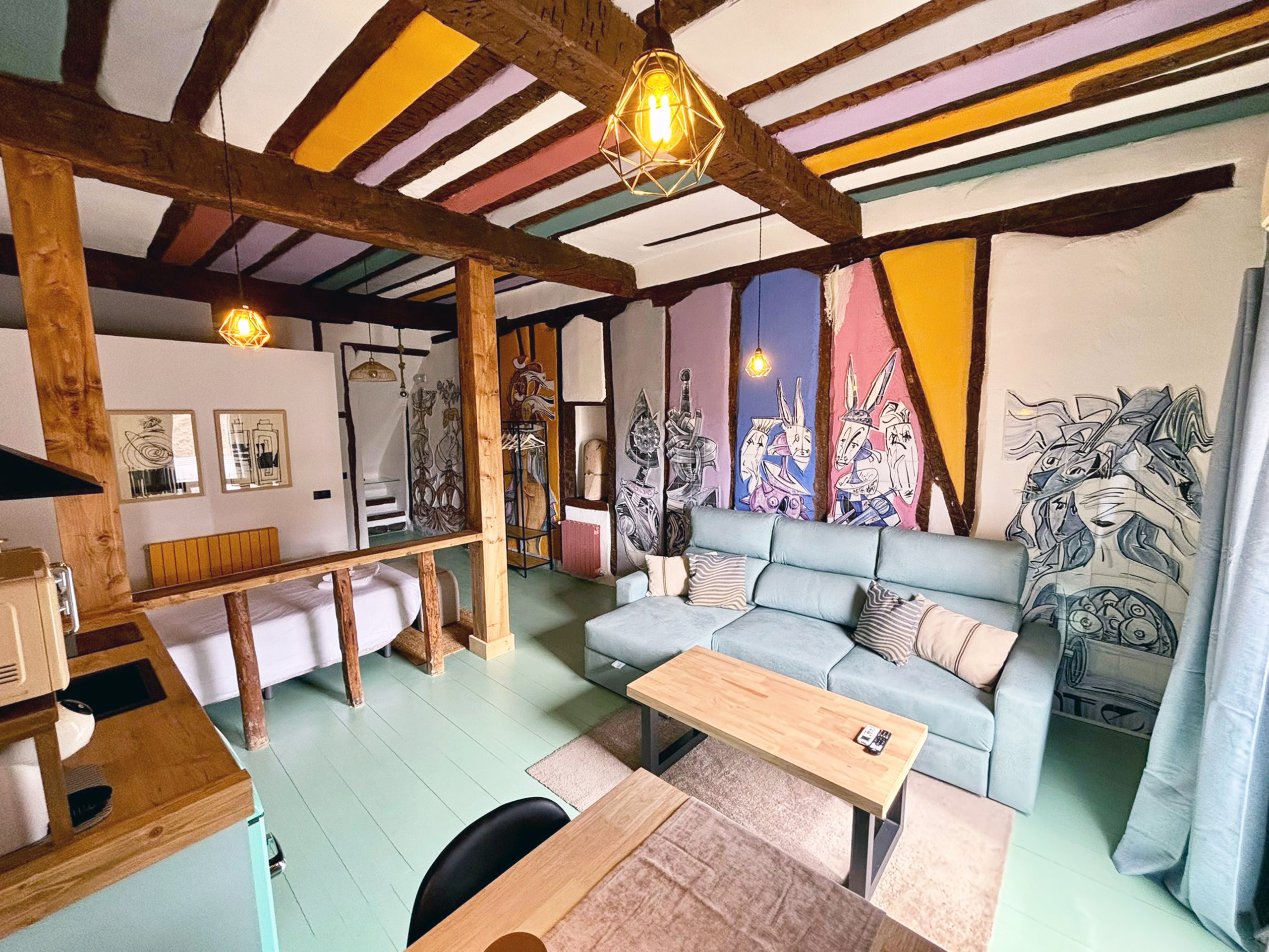 Totalmente reformado recientemente, este encantador alojamiento combina el carácter histórico del edificio con todas las comodidades actuales. Tiene capacidad para 4 personas, con un dormitorio con cama de matrimonio y un cómodo sofá cama en el salón. Dispone de cocina equipada con placa eléctrica, nevera y menaje, baño con plato de ducha, aire acondicionado, calefacción, televisión y Wi-Fi gratuito.