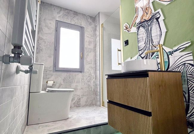 Además, en la entrada del edificio se encuentra una zona común con lavadora y secadora a disposición de los huéspedes.