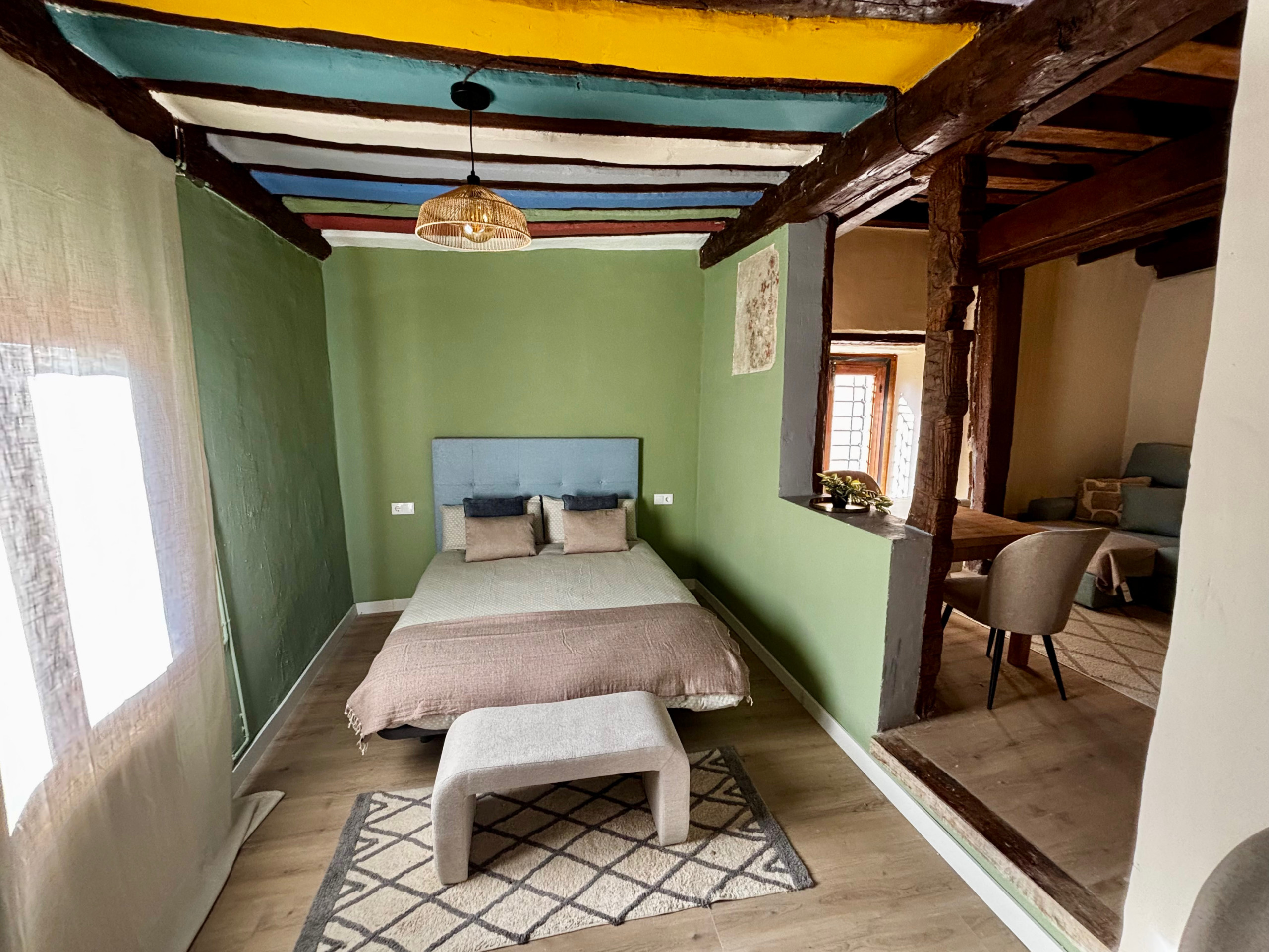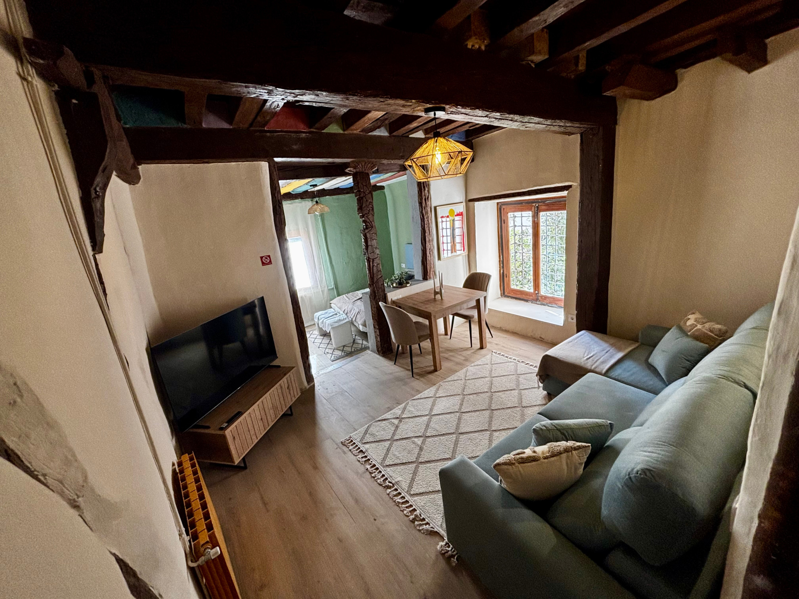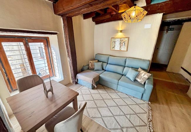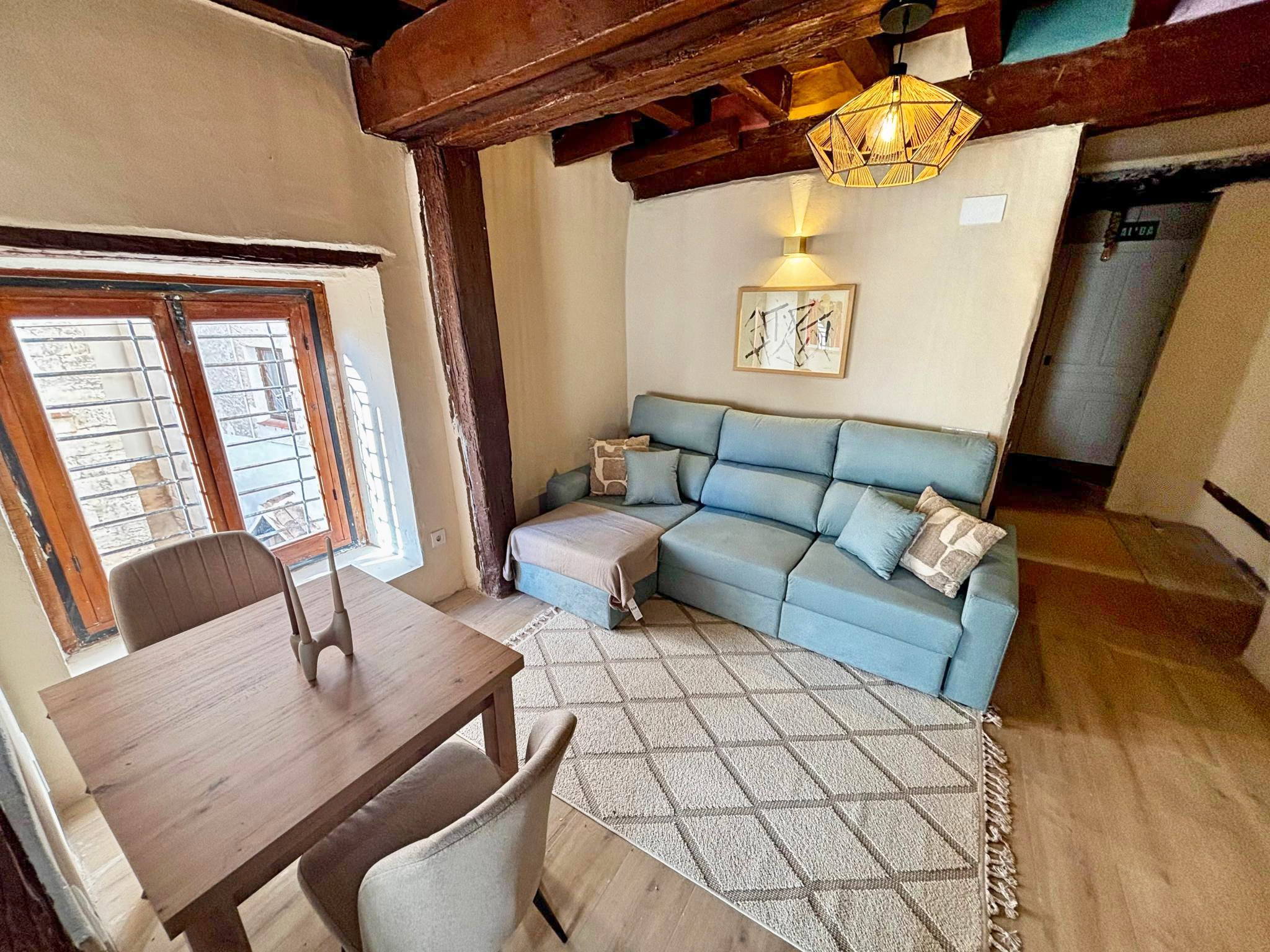 Totalmente reformado recientemente, este encantador alojamiento combina el carácter histórico del edificio con todas las comodidades actuales. Tiene capacidad para 4 personas, con un dormitorio con cama de matrimonio y un cómodo sofá cama en el salón. Dispone de cocina equipada con placa eléctrica, nevera y menaje, baño con plato de ducha, aire acondicionado, calefacción, televisión y Wi-Fi gratuito.