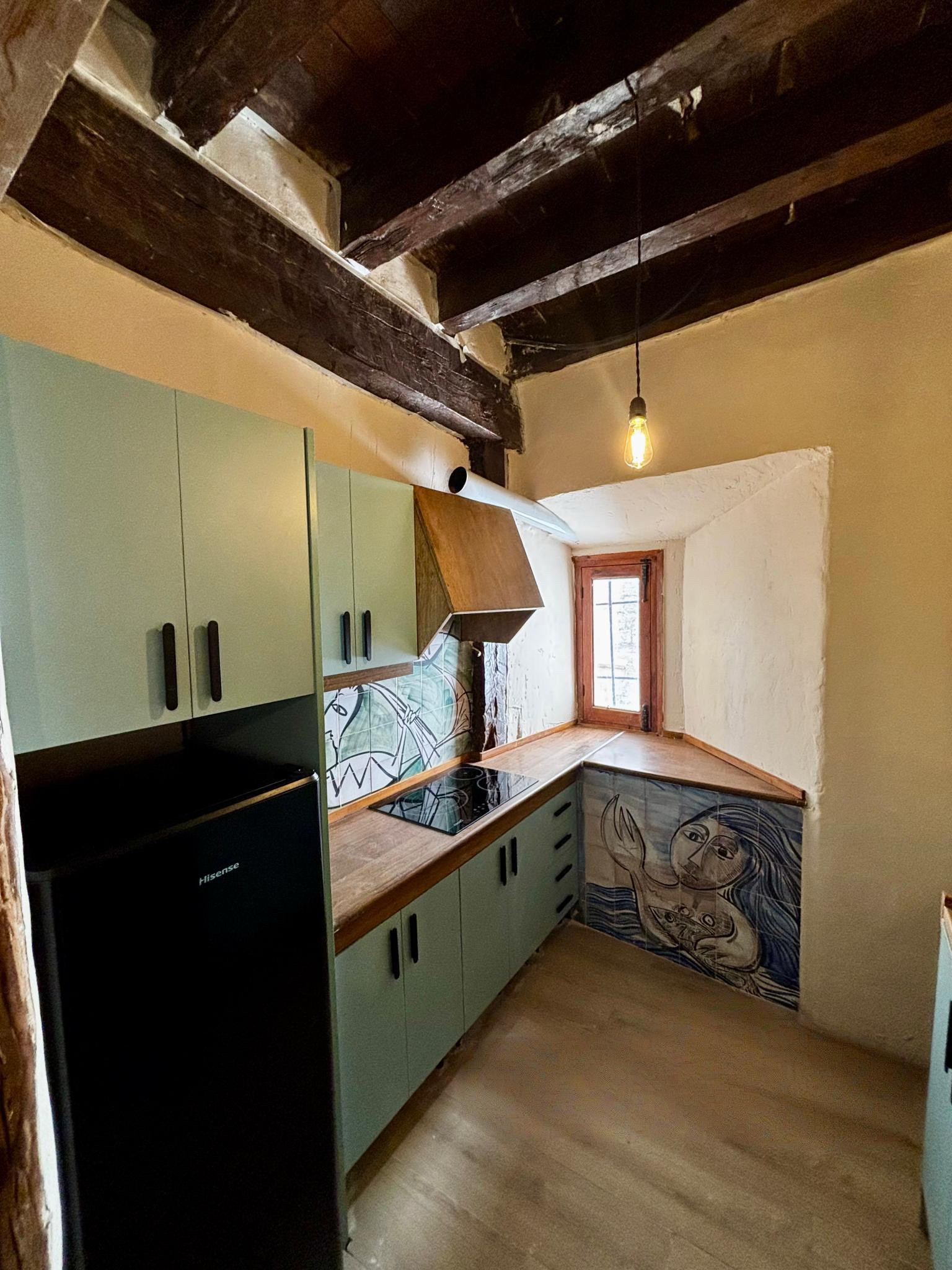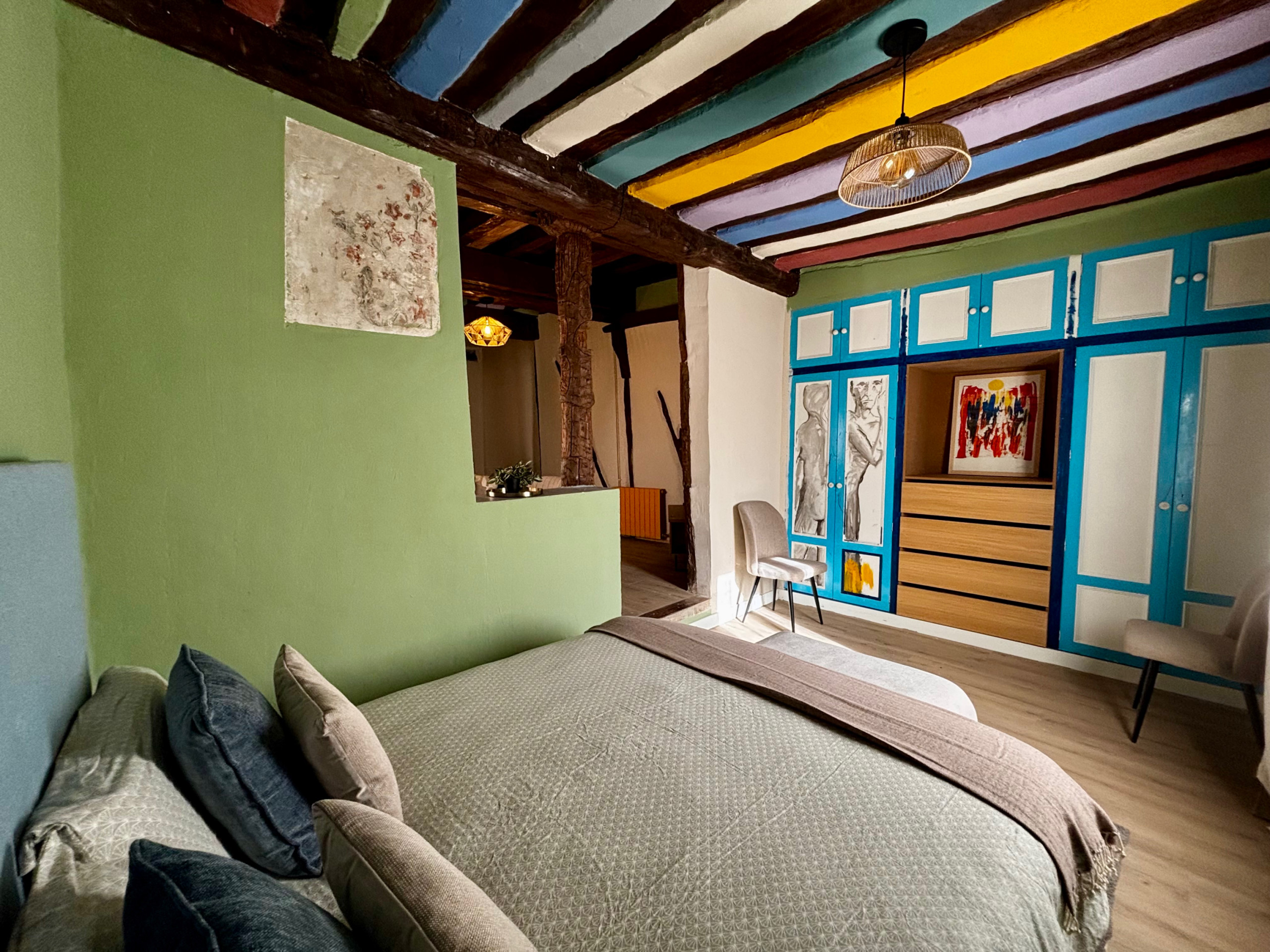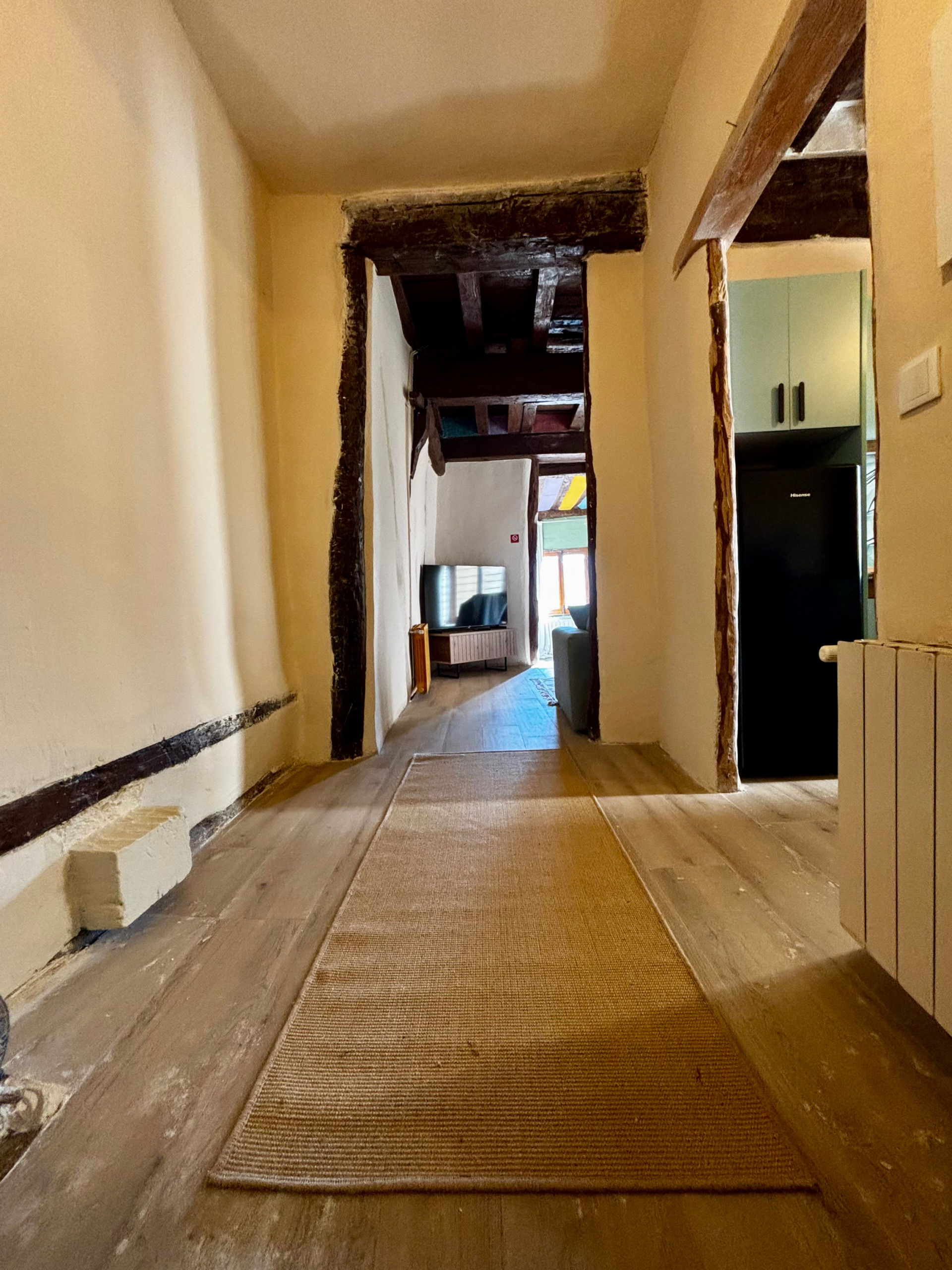 Totalmente reformado recientemente, este encantador alojamiento combina el carácter histórico del edificio con todas las comodidades actuales. Tiene capacidad para 4 personas, con un dormitorio con cama de matrimonio y un cómodo sofá cama en el salón. Dispone de cocina equipada con placa eléctrica, nevera y menaje, baño con plato de ducha, aire acondicionado, calefacción, televisión y Wi-Fi gratuito.